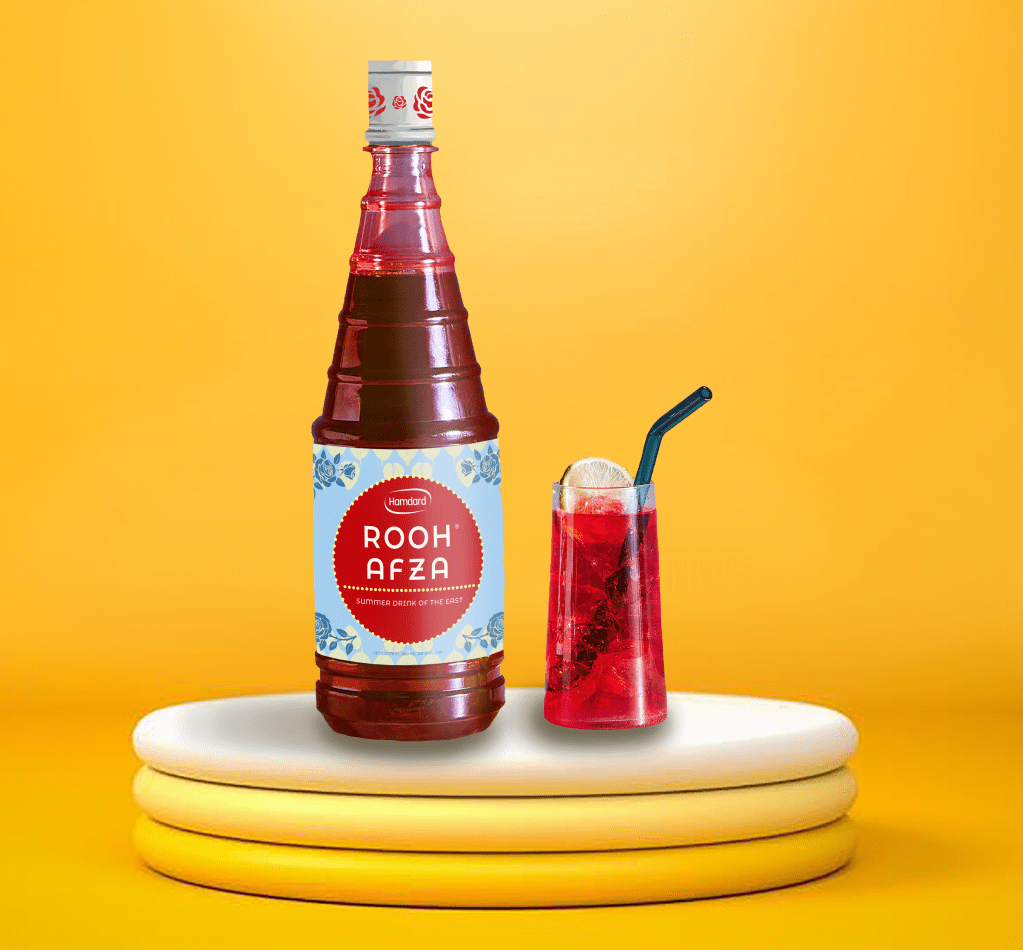 The end goal with this re-design was to modify the existing label to create one that was legible and contemporary in appearance. Since this product (Rooh Afza) is over a century old, it already has an existing loyal customer base, thus making it essential to maintain certain brand equities (i.e.: the red circle, the blue background, the floral illustrations). The original design utilizes a variety of fonts; distracting shapes; an inconsistent colour palette; and typography that is too condensed – making it hard to read.